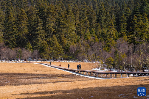 2月23日,游客在普达措景区游览。(新华社发 彭奕凯 摄)