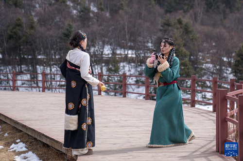 2月23日,游客在普达措景区拍照。(新华社发 彭奕凯 摄)