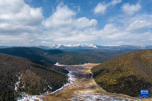 这是2月23日拍摄的普达措景区风光(无人机照片)。(新华社发 彭奕凯 摄)