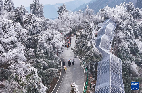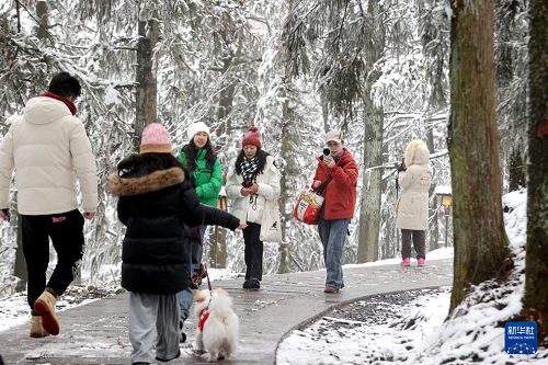 2月23日,游客在浙江省湖州市德清县莫干山赏雪游玩。(新华社发 谢尚国 摄)