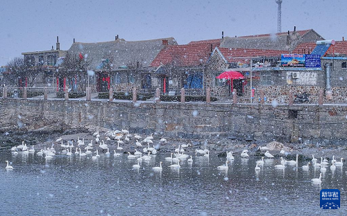 这是2月23日在山东省荣成市俚岛镇烟墩角村拍摄的雪景。(新华社发 李信君 摄)