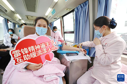 3月5日,浙江省嘉兴市海警医院医护人员在献血。(新华社发 金鹏 摄)