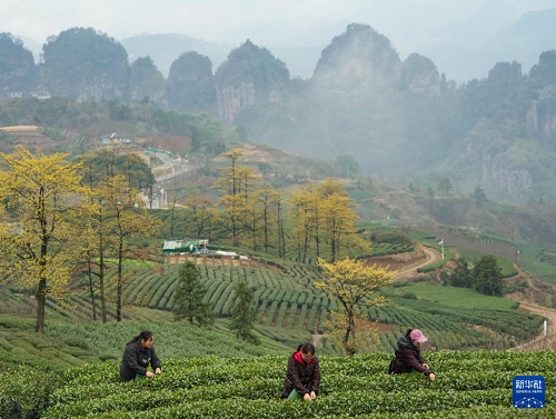 随着天气转暖,浙江省新昌县春茶全面开采。新昌是农产品地理标志产品“大佛龙井”产地,全县目前有茶园15.3万亩,茶叶从业人员18万人。