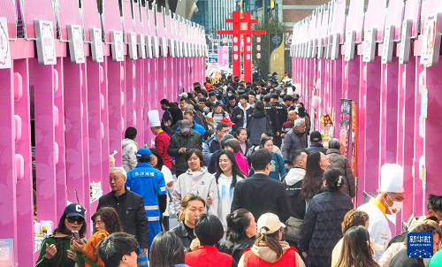 3月17日,消费者在2025年“中华美食荟”湖北潜江摊位参观。(新华社记者 肖艺九 摄)