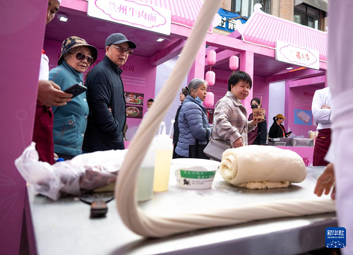 3月17日,消费者在2025年“中华美食荟”现场观看拉面制作。(新华社记者 肖艺九 摄)