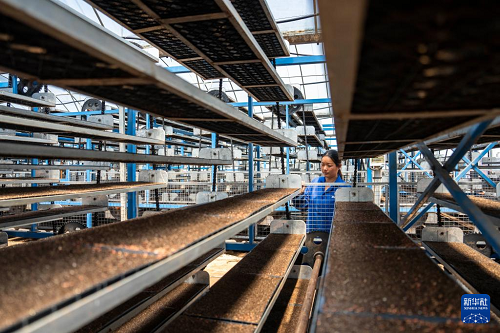 3月20日,在湖南省常德市汉寿县岩汪湖镇武竺山村育秧工厂,农民在查看水稻秧苗的生长情况。汉寿县是传统产粮大县,今年计划早稻播种58.8万亩,目前水稻育秧工作正在加紧进行。(新华社记者 陈思汗 摄)