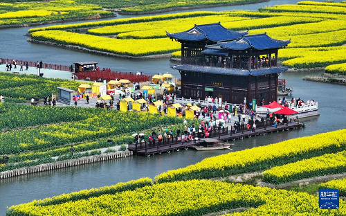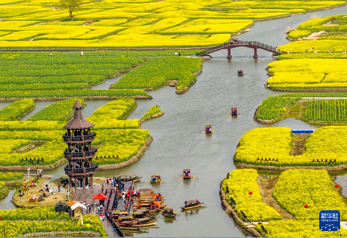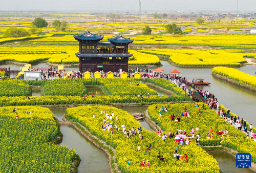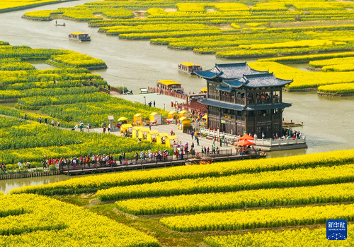 随着气温回升,江苏省兴化市千垛景区的油菜花陆续开放。金黄色的油菜花与纵横交错的河道交相辉映,构成“河有万湾多碧水,田无一垛不黄花”的春日画卷,吸引了不少游客前来赏花,尽享美好春光。