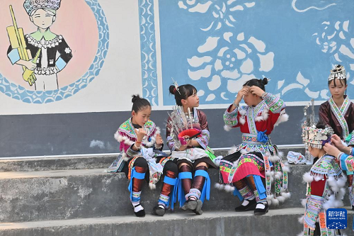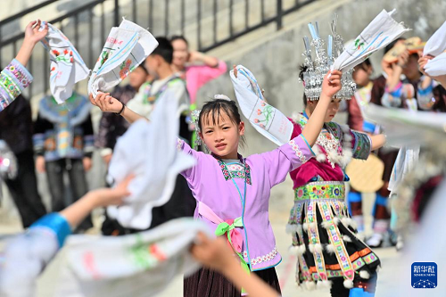 3月25日,广西柳州市融水苗族自治县杆洞乡中心小学举行石榴籽连籽·共庆“三月三”乡村少年宫民族风情文化展演活动,各族少年通过芦笙踩堂舞、山歌对唱、刺绣等丰富多彩的民俗文化活动,喜迎“三月三”传统节日。