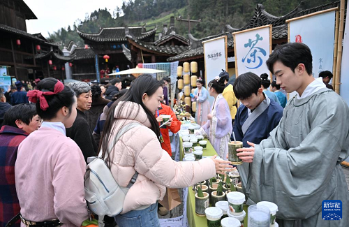 3月30日,湖北省恩施土家族苗族自治州宣恩县梦回“茶马古道”春茶品鉴活动启幕,“宋风雅集”茶市、茶园服装秀、茶山非遗展演等系列活动,吸引众多游客参与其中品味春茶,沉浸式感受茶乡的魅力。