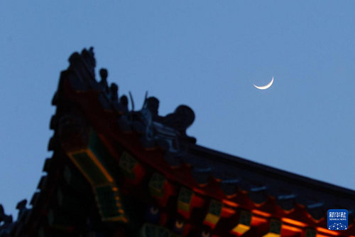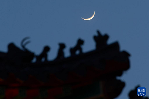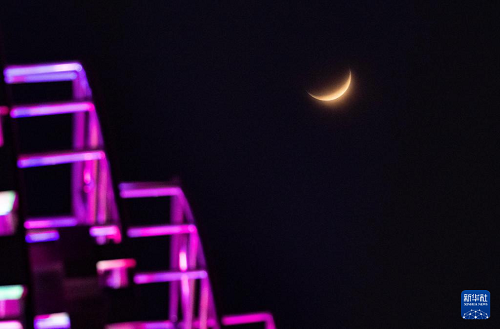 4月1日在黑龙江省北安市拍摄的“年度最大蛾眉月” 。(新华社发 钱泊羽 摄)