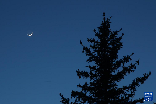 4月1日在黑龙江省大兴安岭地区加格达奇区拍摄的“年度最大蛾眉月” 。(新华社发 谭雪松 摄)