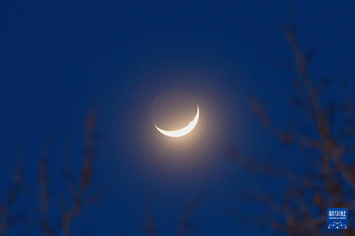 4月1日在黑龙江省佳木斯市富锦市拍摄的“年度最大蛾眉月”。(新华社发 曲玉宝 摄)