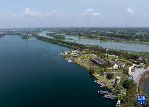 这是4月6日拍摄的成都西湖公园一角(无人机照片)。(新华社记者 江宏景 摄)