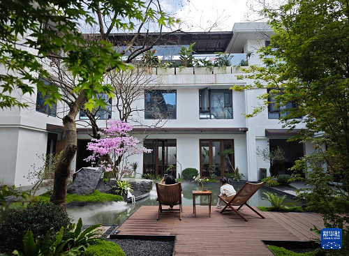 4月6日,在成都西湖公园民宿区,顾客在休憩。(新华社记者 江宏景 摄)