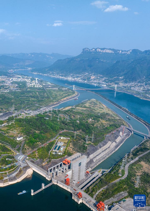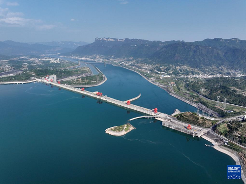 4月8日在湖北省宜昌市秭归县拍摄的三峡大坝(无人机照片)。(新华社发 王罡 摄)