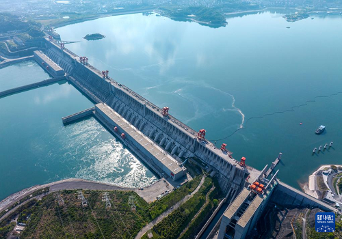 4月8日在湖北省宜昌市秭归县拍摄的三峡大坝(无人机照片)。(新华社发 王辉富 摄)