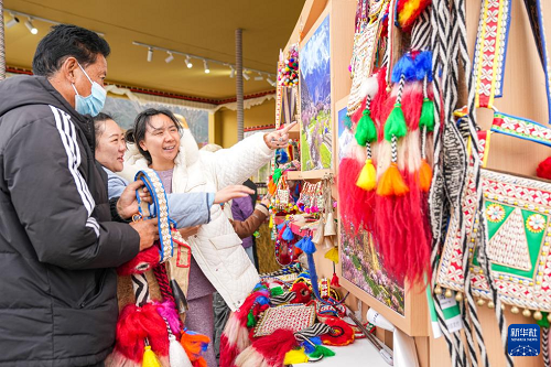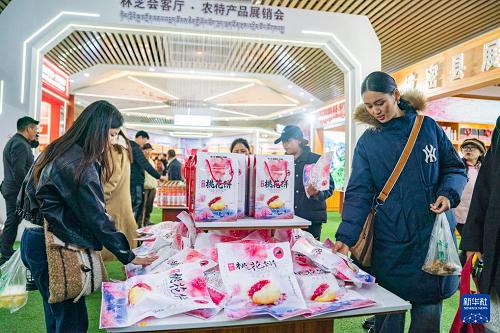 4月3日,游客在林芝市工布公园选购当地特产。(新华社记者 丁增尼达 摄)