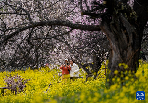 4月2日,游客在林芝市嘎拉村赏花。(新华社记者 晋美多吉 摄)