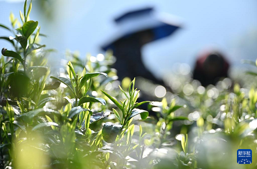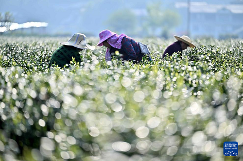4月9日,茶农在湖北省宣恩县椒园镇水田坝村的茶园里采摘白茶。(新华社发 宋文 摄)
