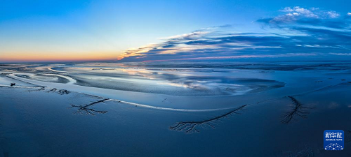 这是2023年8月31日拍摄的盐城东台条子泥湿地日落景色。(新华社记者 季春鹏 摄)