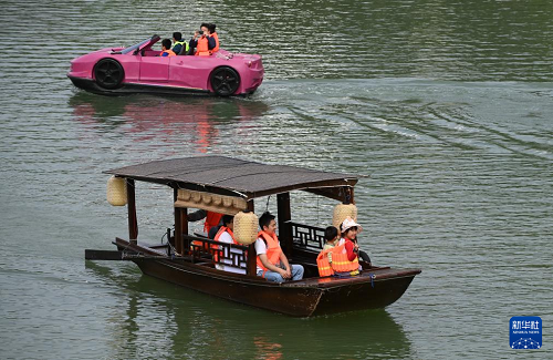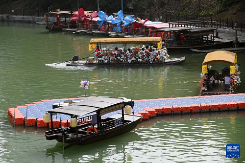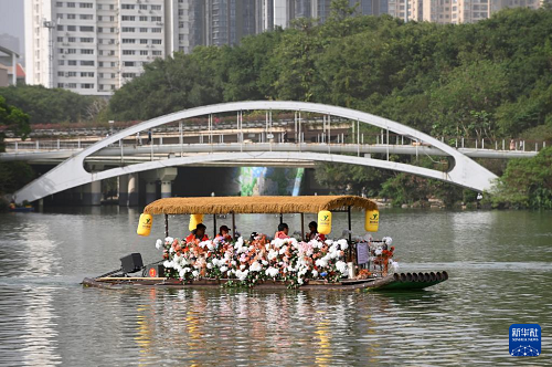 4月13日,广西南宁市天气晴好,不少市民利用周末来到民歌湖上泛舟游玩,享受明媚春光。(新华社记者 陆波岸 摄)