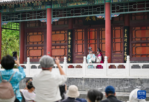 5月5日,2025“邂逅·天津——戏曲街角”携京剧《西厢记》走进拥有160多年历史的天津人民公园。来自天津京剧院与天津歌舞剧院的演员在公园内巧妙利用园林空间层次,为市民游客在假期内带来“游园+赏戏”的沉浸式戏曲文化体验。