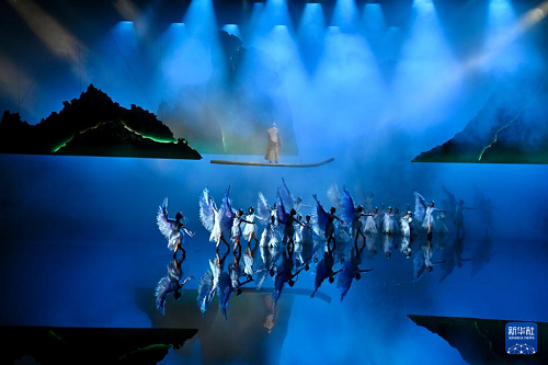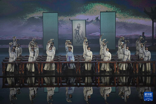 5月8日,大型文旅舞台剧《月映武夷》演员在演出。(新华社记者 姜克红 摄)
