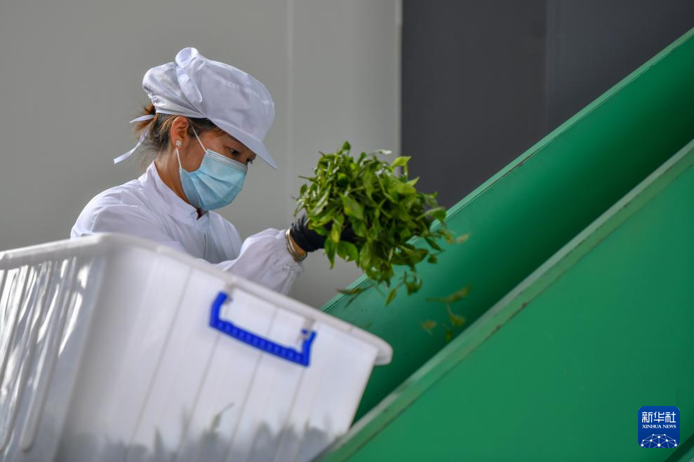 5月8日,工人在麻栗坡县猛硐乡新华国茶加工厂作业。(新华社发 彭奕凯 摄)