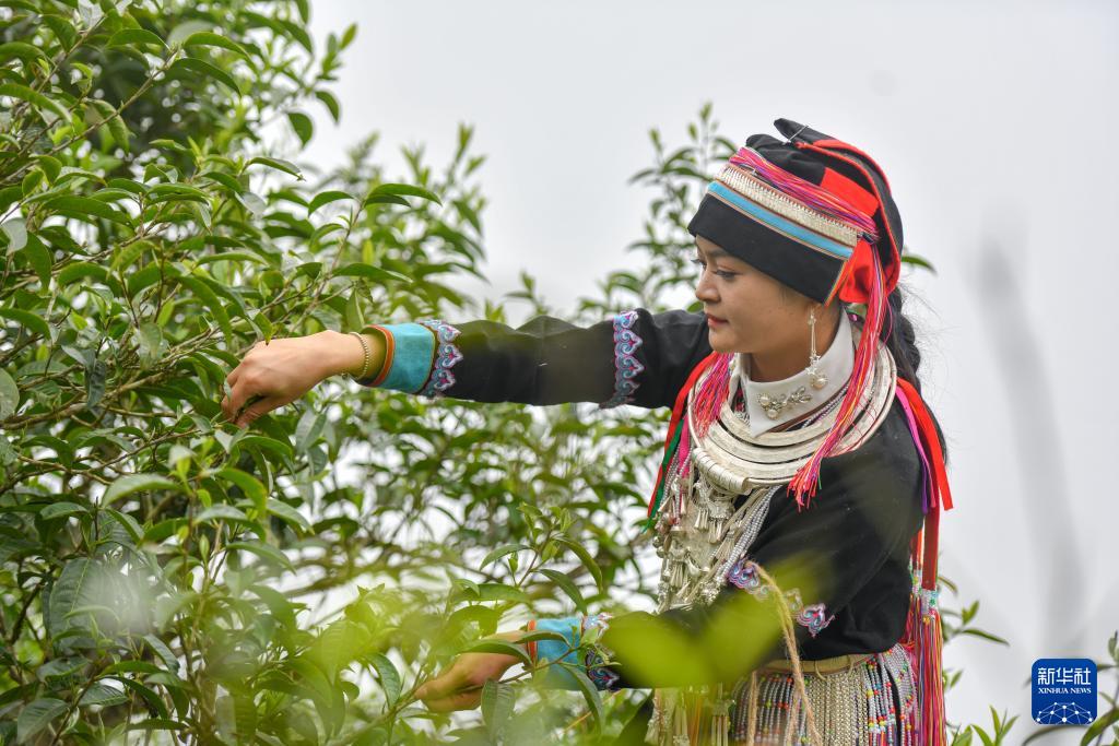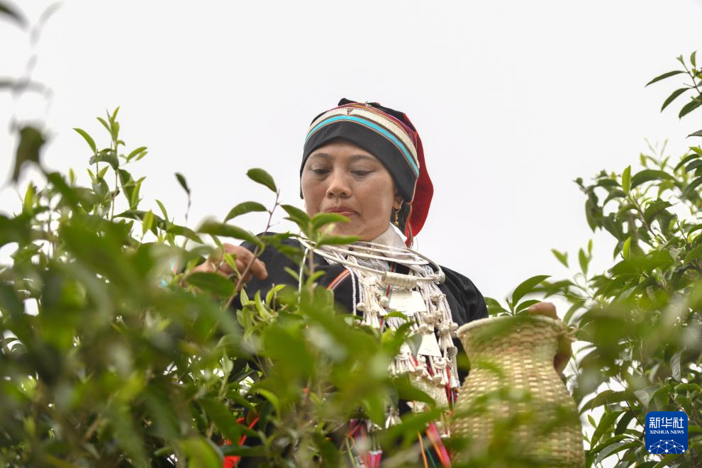 5月8日,茶农在麻栗坡县猛硐乡的一处茶园采摘茶叶。(新华社发 彭奕凯 摄)
