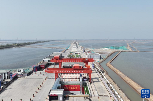 5月19日拍摄的津潍高铁津沽海河隧道盾构工区(无人机照片)。(新华社记者 李然 摄)