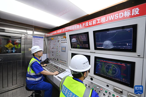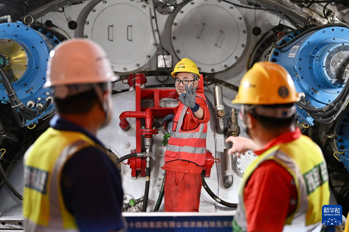 5月19日,中铁十四局的建设者在盾构机施工现场工作。(新华社记者 李然 摄)