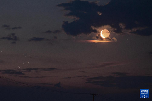 这是6月23日凌晨在黑龙江省黑河市五大连池市二龙山农场拍摄的昴星团伴月。(新华社发 钱泊羽 摄)