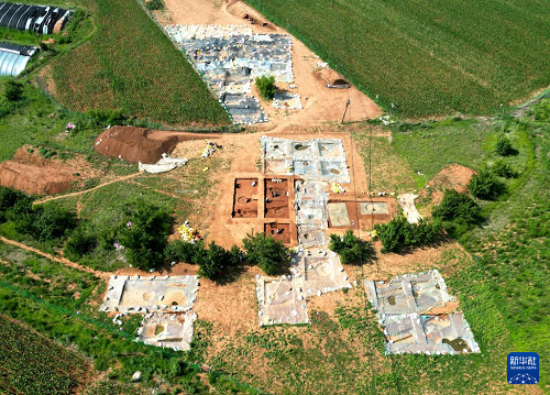 这是6月24日拍摄的东山头遗址考古发掘现场(无人机照片)。(新华社发 河北省文物考古研究院供图)