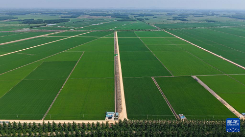 这是6月24日在黑龙江北大荒农业股份有限公司八五六分公司第六管理区高标准农田拍摄的水稻秧苗(无人机照片)。(新华社发 黄永兴 摄)