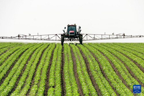 6月23日,在北大荒集团黑龙江格球山农场有限公司第三管理区,种植户驾驶农机进行夏管作业。(新华社发 陆文祥 摄)