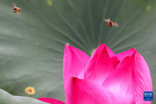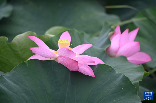 7月22日,北京北海公园内荷花盛开。(新华社发 戴明轩 摄)