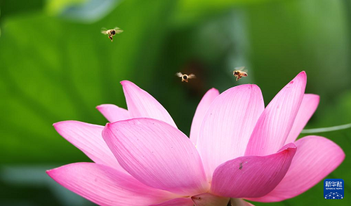 7月22日在山东省枣庄市东湖公园拍摄的荷花。(新华社发 孙中喆 摄)