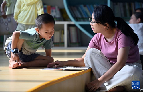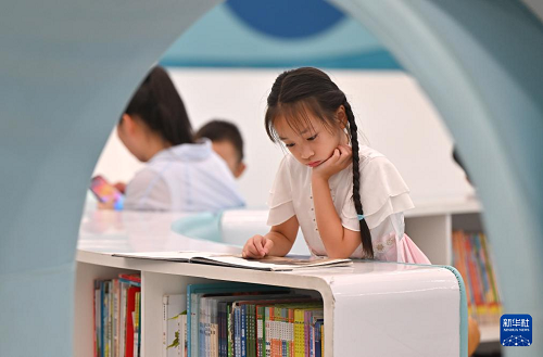 8月3日,小朋友在位于海口市的海南省图书馆读书。(新华社记者 郭程 摄)