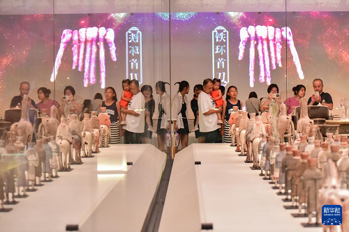 8月2日,家长带着小朋友在山东省青州博物馆参观。(新华社发 王继林 摄)