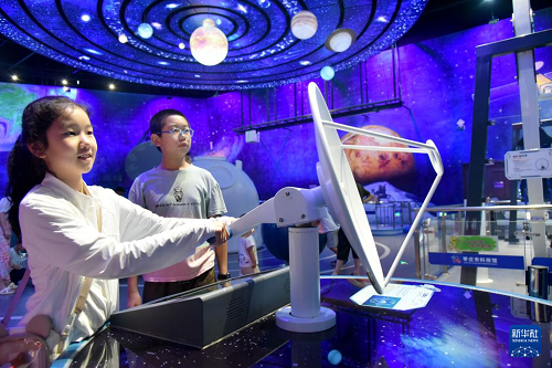 8月2日,小朋友在山东省枣庄市科技馆参观。(新华社发 刘明祥 摄)