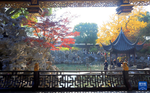 12月8日,游客在江苏苏州狮子林观光游览。(新华社发 王建康 摄)