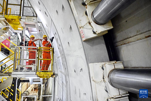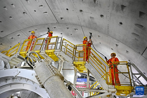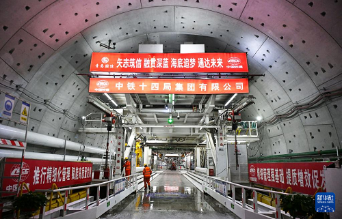 12月15日,中铁十四局建设者在海平面下91米进行施工作业。(新华社记者 李紫恒 摄)