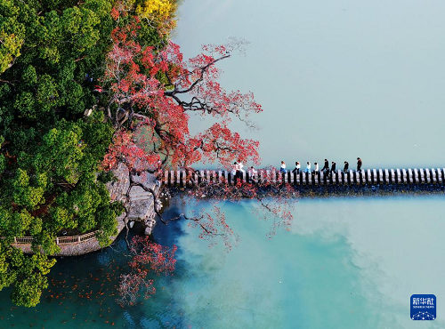 12月7日,游人在南京中山植物园观赏枫叶。(新华社发 杨素平 摄)