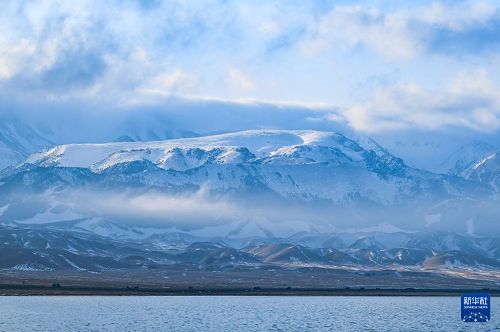 12月16日拍摄的赛里木湖和雪山。(新华社记者 王菲 摄)