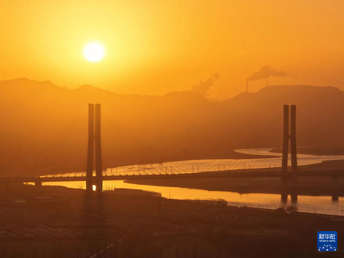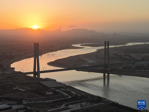 晨曦初绽,金色朝霞映照包银高铁乌海黄河特大桥,钢铁巨龙静卧母亲河之上。当日,包银高铁全线贯通运营。