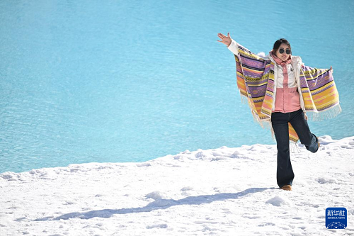 12月25日,游客在青海省海北藏族自治州门源回族自治县的岗什卡雪峰景区内游玩。(新华社记者 张龙 摄)