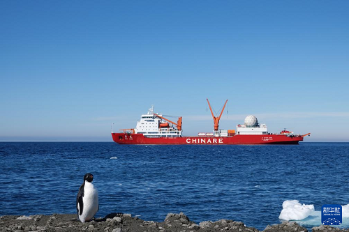 12月29日在秦岭站海域拍摄的“雪龙”号极地科考破冰船。(新华社记者 顾天成 摄)