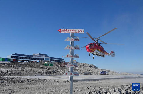 12月29日,“雪鹰102”直升机在秦岭站降落。(新华社记者 顾天成 摄)