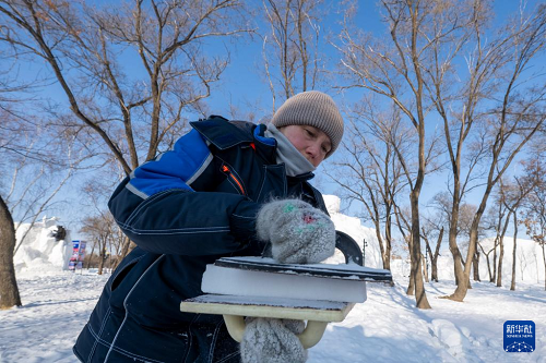 1月7日,在哈尔滨太阳岛雪博会园区,来自13个国家的25支代表队百余位艺术家在寒冬中坚持艺术创作,精雕细琢雪雕作品。