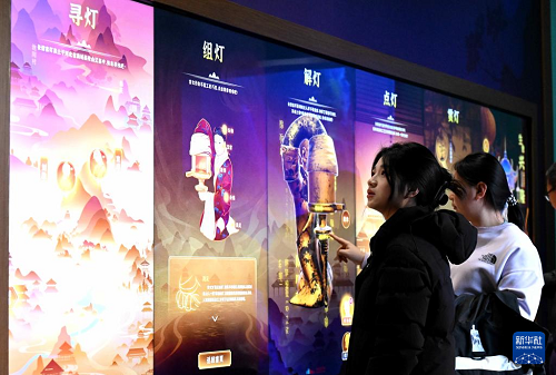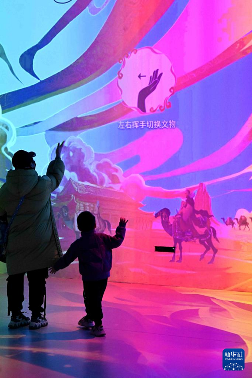 1月13日,参观者在河北博物院数字互动体验展中体验互动。(新华社发 陈其保 摄)